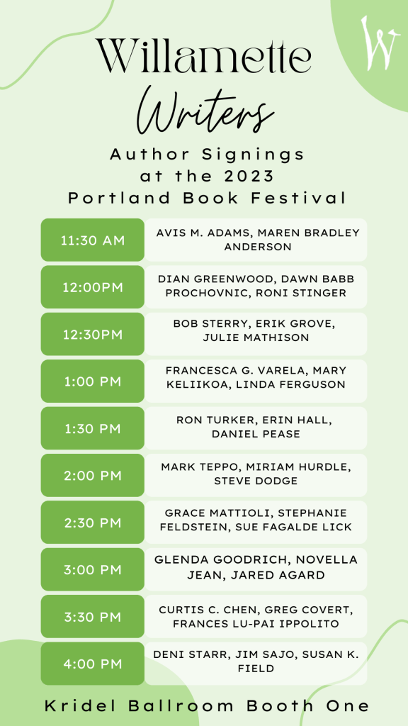 I’ll be with the Willamette Writer’s talking about my books and all things writing! Come join us!